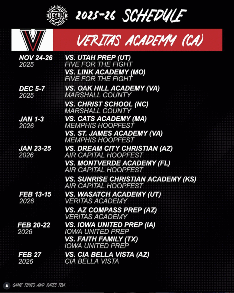 As a Nike Elite High School and proud member of the Nike EYBL Scholastic League, Veritas Academy offers a rigorous private school education combined with one of the nation’s most competitive basketball environments. Our program serves middle school (grades 6–8, including an additional holdback year) and high school (grades 9–12) student-athletes who are committed to excelling both in the classroom and on the court.